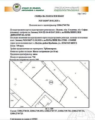 9/14 /девет четиринадесети/ идеални части от: Поземлен имот с идентификатор 12084.2749.716 по кадастралната карта и кадастралните регистри на с.Волуяк, общ. Столична, обл. София /столица/, адрес на поземления имот: с. Волуяк, район Връбница, ул. Ломскошосе, площ: 739 /седемстотин тридесет и девет/ квадратни метра, трайно предназначение на територията:урбанизирана, начин на трайно ползване: ниско застрояване до 10 метра, предишен идентификатор: няма, номер попредходен план: 716, при съседи: 12084.2749.30, 12084.2749.2551, 12084.2749.727, 12084.2749.715, 12084.2749.722 и12084.2749.723, а съгласно нотариален акт: ДВОРНО МЯСТО от 740 /седемстотин и четиридесет/ квадратни метра, съставляващо имот план. № 716/седемстотин и шестнадесет/, кад. лист А-10-4-Г по плана на с. Волуяк-София, при съседи: улица, ВасилкаКатинчева, Гаврил Танов и Симеон Симеонов. Лице за контакт Стефан Панайотов, тел. 0893 354 235, e-mail: [. protected]