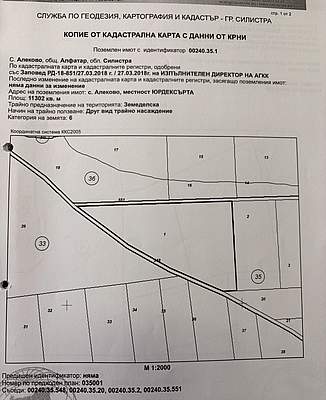 1/2 идеални части от: ПОЗЕМЛЕН ИМОТ с идентификатор 00240.35.1, находящ се в с. Алеково, общ. Алфатар, местност "ЮРДЕКСЪРТА", с площ от 11302 кв.м., трайно предназначение на територията: земеделска, начин на трайно ползване: друг вид трайно насаждение, шеста категория, при граници и съседи: имоти с идентификатори: 00240.35.548; 00240.35.20; 00240.35.2; 00240.35.551;